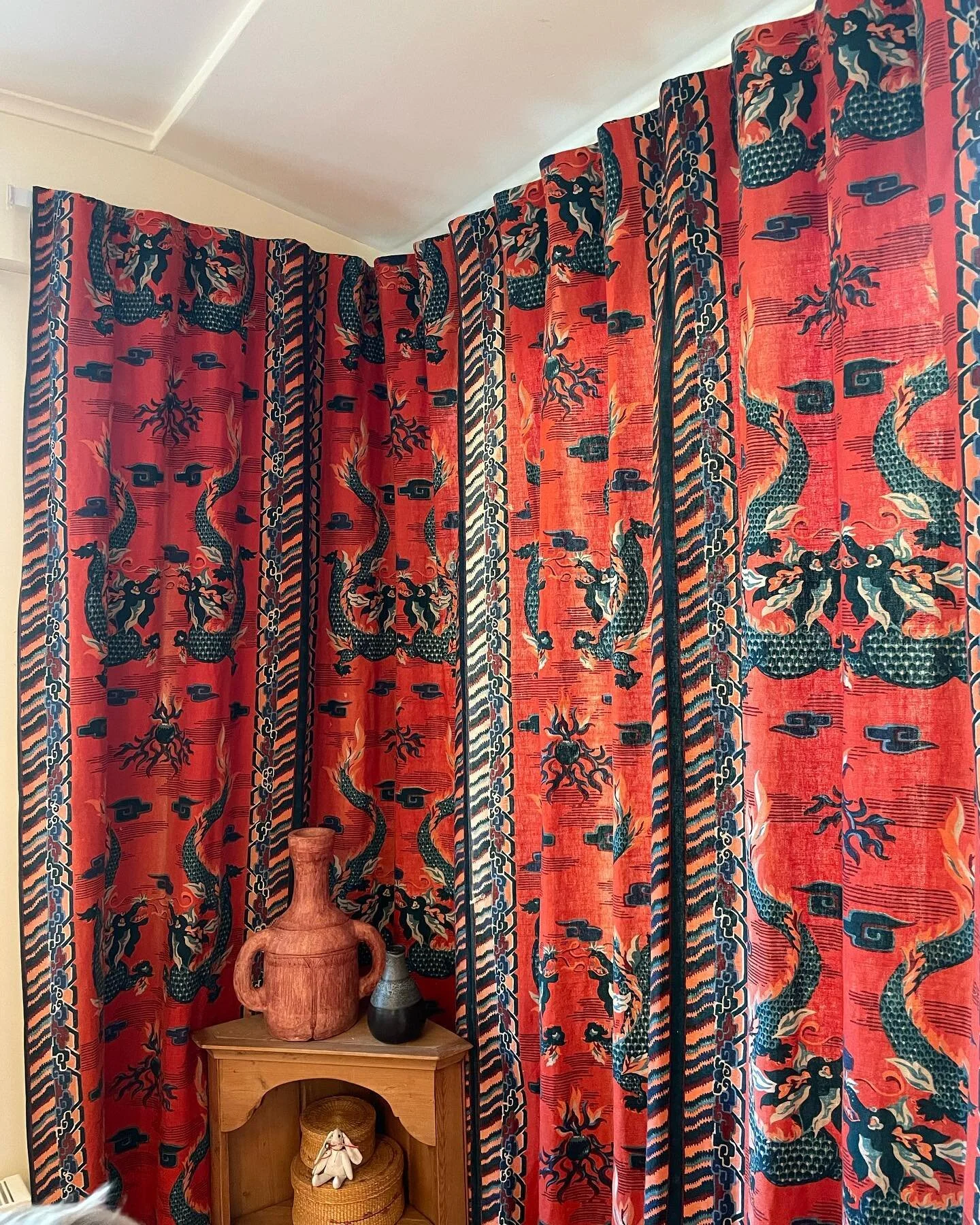 Vintage curtains that received an upgrade: patched, interlined, lined and a modern heading to suit the new space.